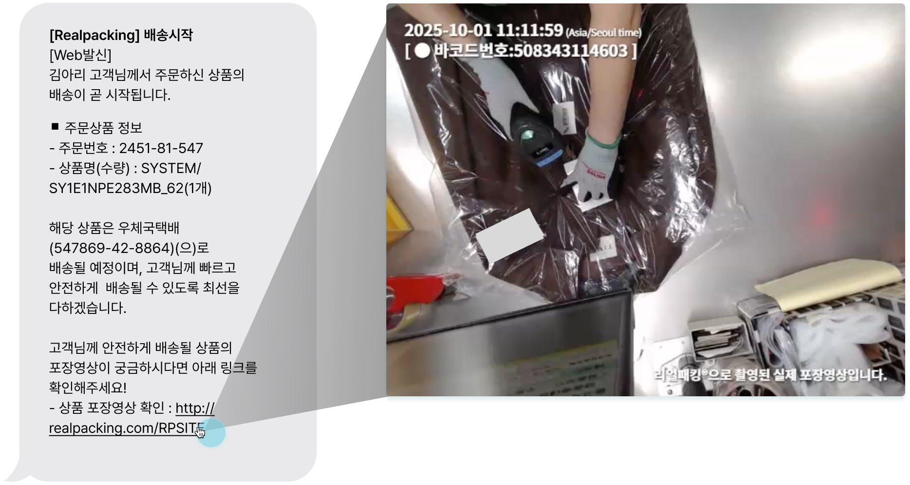 ๋ฆฌ์ผํจํน์ ์์ ๋ฉ์์ง ๋ฐ์ก ๊ธฐ๋ฅ์ ์ถ๊ณ ๊ณผ์ ์์ ์๋์ผ๋ก ์ดฌ์๋ ์์์ ๊ณ ๊ฐ์๊ฒ ํ ๋ฒ์ ์ ๋ฌํ ์ ์๋๋ก ๋์ต๋๋ค. ํด๋ฆญ ๋ช ๋ฒ์ด๋ฉด ์์ฒ ๋ช